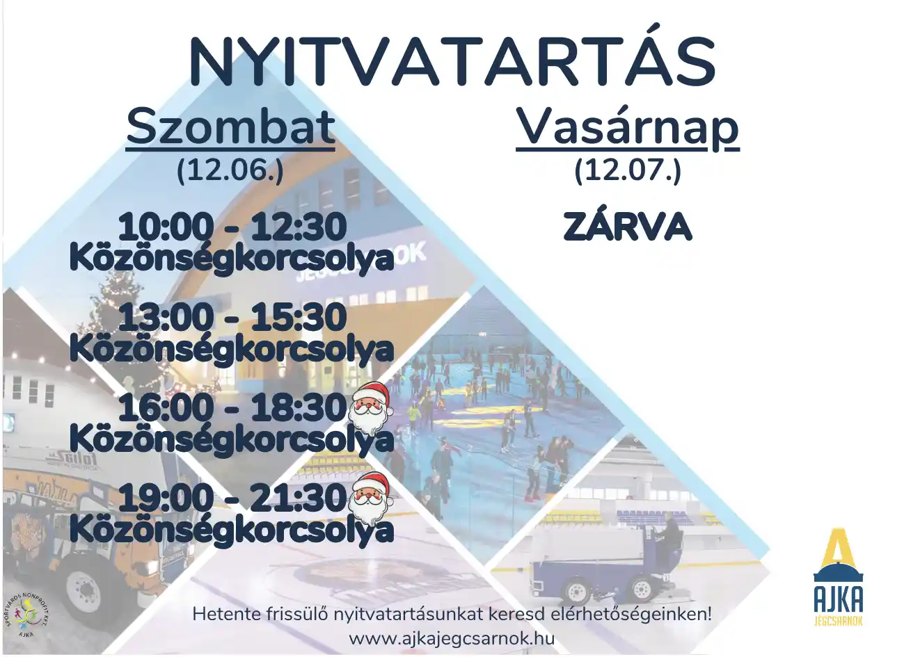 👉16:00 – 18:30 : Közönségkorcsolya – Mikulás buli – Ajka Jégcsarnok