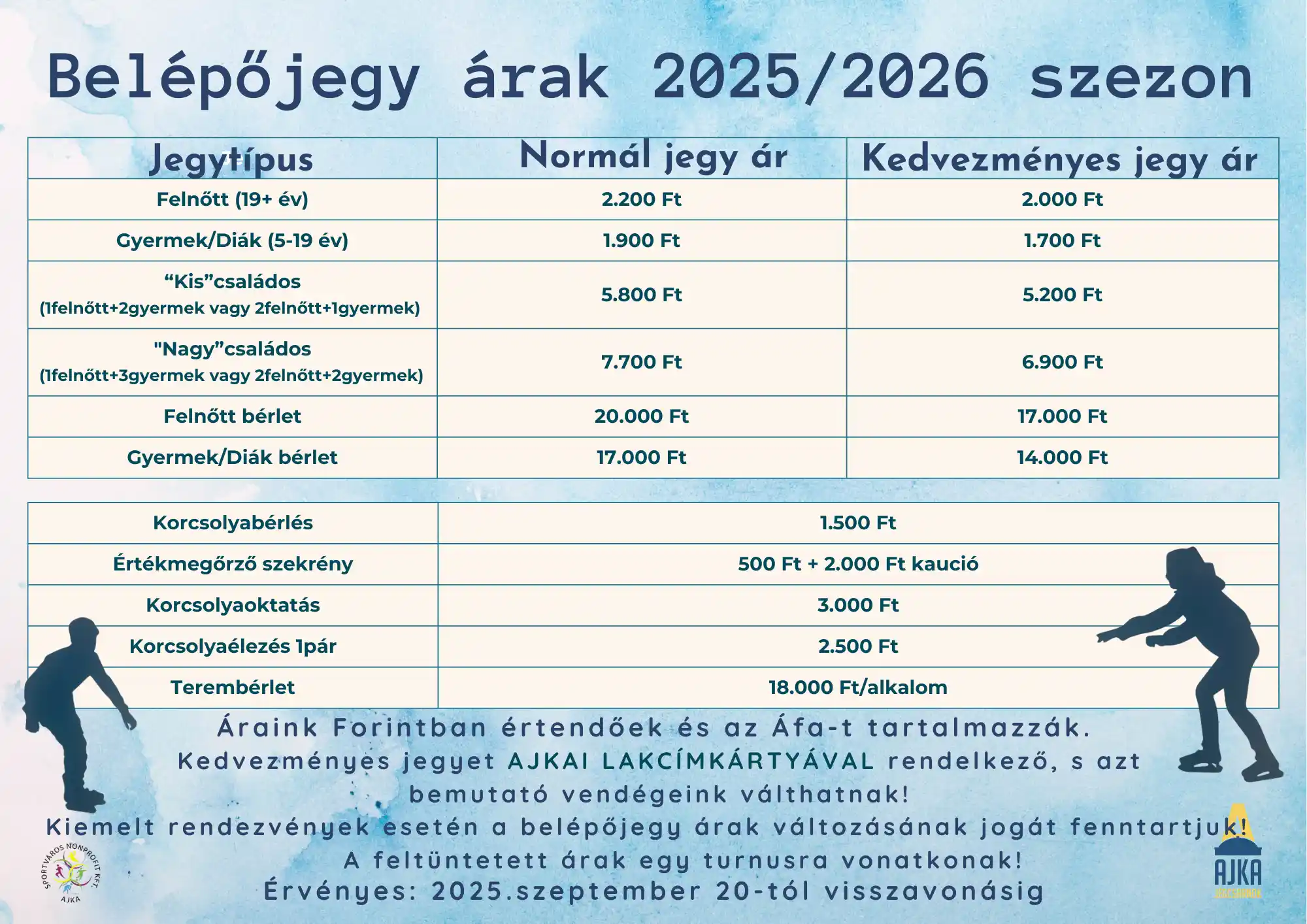 Gyere és korcsolyázz Magyarország egyik legszebb Jégcsarnokában Ajkán. Hatalmas korcsolyakészlettel, élezőgéppel, és kifogástalan állapotú jégfelülettel várunk. A közönségkorcsolya ideje alatt a Jégbár rengeteg téli finomsággal, szendvicsekkel vár benneteket.